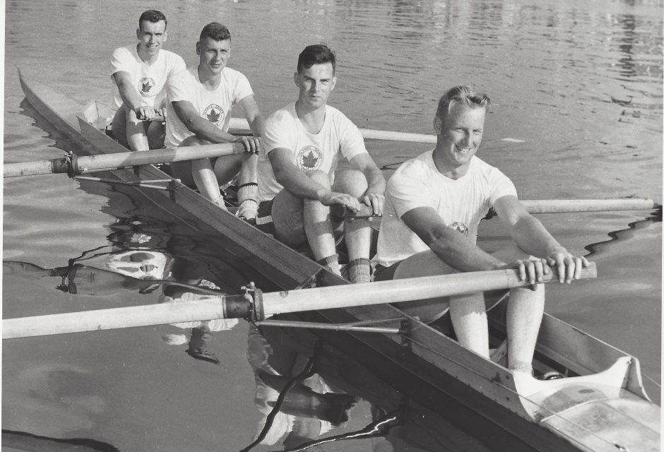 Early every morning he’d meet his teammates down at the Vancouver Rowing Club and Read would put the boys through epic workouts to Second Narrows and back, always finishing with a hard 2000m time trial. Everyone wanted to be in the Varsity Eight crew, but most had to work their way up, Don no exception. He spent 1955 in the Junior Varsity and in 1956 he found himself plunked in a Fours crew with Archie McKinnon, Lorne Loomer, and Walter d’Hondt. Don’s Four spent every training session scrambling to keep up with the Eight to glean whatever scraps of Read’s coaching wisdom they could get. This constant chase would have unexpected benefits later on.