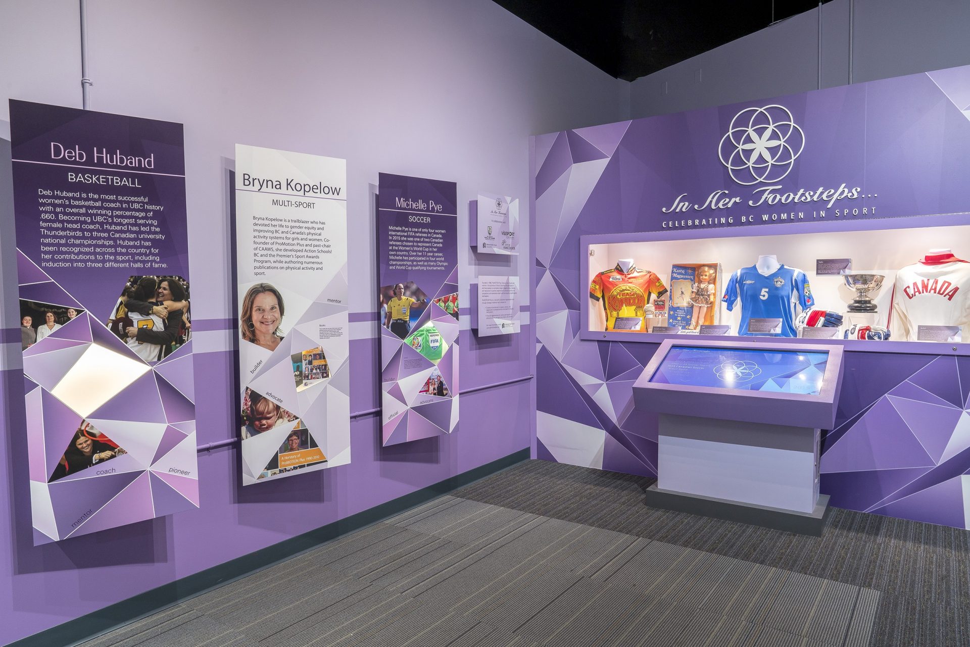 In 2006, ProMOTION Plus, the BC Sports Hall of Fame, 2010 Legacies Now and the British Columbia Centre of Excellence for Women's Health created In Her Footsteps to celebrate these remarkable women and their extraordinary achievements. Each Honouree is an inspirational leader and role model and has left a legacy for the community, province and nation. The gallery features an interactive touch-screen component and allows visitors to learn about female athletes, coaches, officials, builders and mentors in British Columbia through videos, text and photographs.